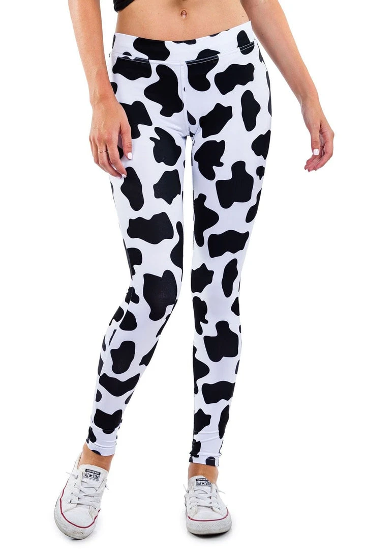 Ladies, our women’s animal print leggings range is absolutely hopping this Halloween or barking, growling or mooing! With these cow print leggings, you’ll be the bovine bell of the ball – assuming said ball is a costume party. These casual cow leggings can be part of a more elaborate mooing ensemble or a simple relaxed Halloween look – try pairing them with our holy cow tank top, for example. Made from stretchy spandex, our cow leggings encourage freedom of moooovement (sorry) for dancing, trick or treating, or grazing by the buffet table. Available in a range of sizes to flatter all shapes, they’re comfortable enough to wear every day: from grabbing party snacks to dancing the night away and nursing the Halloween hangover the next morning. Save them for the party season or take them to the gym with you – the possibilities are endless! Just don’t take them to your local burger bar.