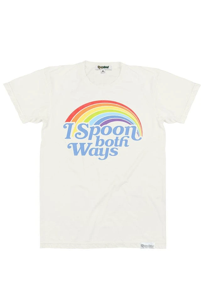 You might feel like giving the middle fork tine to all the haters out there with this out and proud apparel. But the I spoon both ways tee is really here to remind us that everyone just needs a good cuddle. Wrap yourself in this fabulous t-shirt and a pair of our rainbow pants for a totally embraceable ensemble.