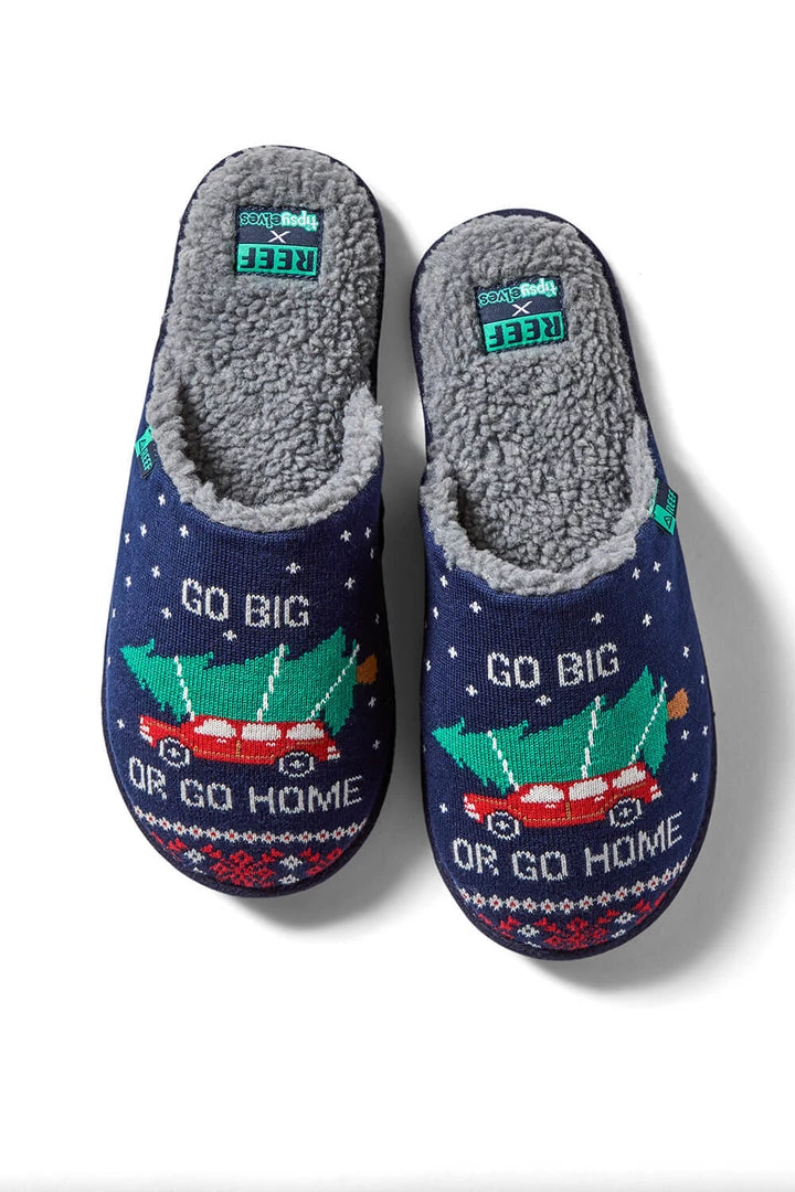 You know how the saying goes – go big or go home. And we know you don’t want to go home, or you’d miss the huge amount of sweets and goodies at the Christmas party. That’s why you’ve got to make sure you’ve brought a bold ugly Christmas sweater, or you might be turned around and sent right back out the door. Take it a whole step further with the Men’s Go Big or Go Home Reef Slippers, calling out that you do everything big – and a whole lot more comfortable than the rest.
