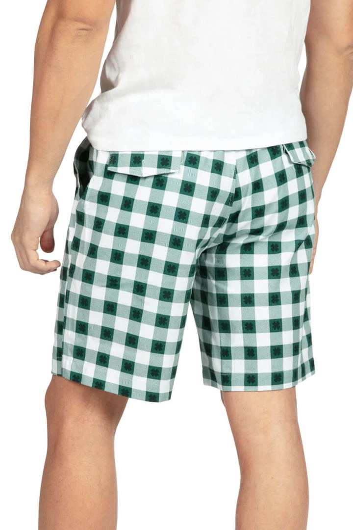 Feeling hot this St. Patrick’s Day? Cool off with our Men’s St. Paddy’s Green Gingham Shorts, ideal for hitting the bar or even the beach, if you’re so inclined. It might not be Irish weather, but that’s no reason not to hang on to your Irish roots with these shamrock-inspired bottoms. Complete with lucky horseshoes, clovers and tankards of beer, these shorts are a chessboard of good old fashioned St. Paddy’s Day irresponsibility.