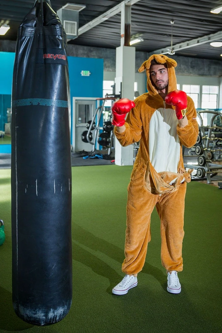 Remember that Halloween party last year? Pretty hoppin’, right? If not, you know it will be this time around if you rock up in a kangaroo onesie! This men’s kangaroo onesie is a snug and cuddly answer to all your Halloween costume worries. You’ll look every part the lovable Skippy character with floppy ears nestling your face – in fact, this kangaroo onesie is so comfortable, you could be forgiven for skipping the party altogether. But this is a kangaroo Halloween costume after all, so why not rock it this year? The uber comfortable hood means there’s plenty of breathing room for those party beers, and if you really want to impress the guests, it even comes with your very own baby kangaroo! It’s the only Halloween costume that’s just as acceptable to wear for a hangover, so throw it on, blast out your favorite tunes and don’t forget to bounce.