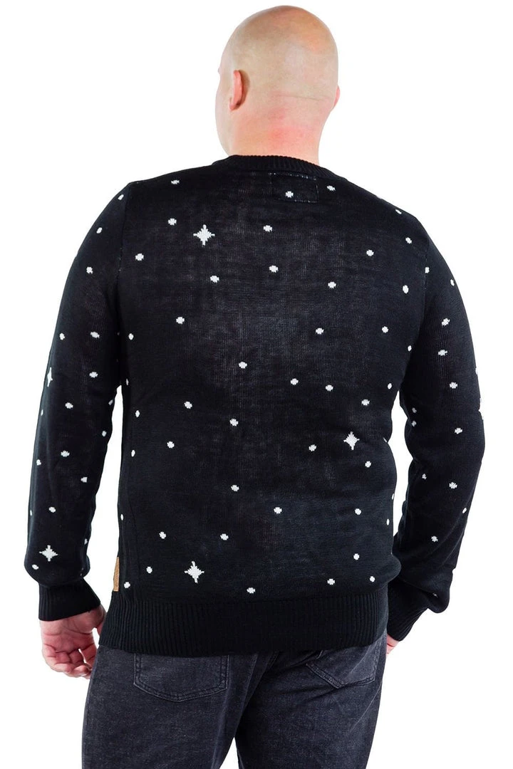 When your sleigh breaks down, what’s a guy to do? Hey, this is a dude with access to a million magic elves and flying reindeer – he’s got contacts. Enter the Christmicorn. This Christmas, Santa’s giving Rudolph the night off and jumping on the back of this mythical beast instead. Our Men’s Santa Unicorn Big and Tall ugly Christmas sweater will turn heads as soon as you walk in the room. Has it got stars? Yes. A flying horse? Yes. Santa flying past Saturn like a dude? You betcha. Built for guys with more to love, this sweater is ideal for fashion-forward individuals.