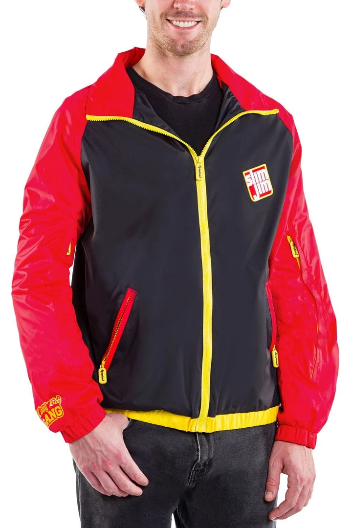 Gentlemen, are you a proud fan of the good old American meat-based snack? You bet your well-dressed ass you are! We’re paying tribute to all things bacon with our Men’s Slim Jim Red and Black jacket. Brought to you by the folks who keep your belly full and your lips smiling, this stylish red and black overcoat is great for ball games. Zip up, head down to the game and get your meat stick on.