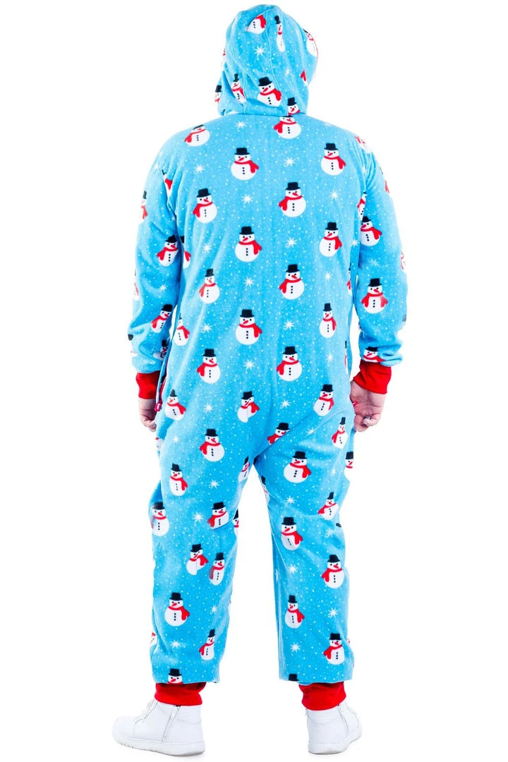 If there’s one guy who’s got more to love, then it’s Frosty the Snowman. This year, embrace your inner Frosty with our Men’s Snowman Is An Island Big and Tall jumpsuit. (Yes, we love the pun too.) This cool blue one-piece looks just like gift wrap, only you’re the present inside. Unwrap yourself easily thanks to the front zipper, or use those front pockets for storing snowballs. We can’t guarantee how long they’ll last. Made for all sizes, this super cute pattern features thousands of our favorite Christmas character bobbing around your torso. It’s also much warmer than going outside. #Winning.