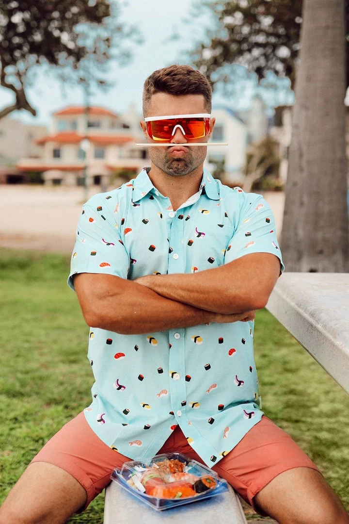 Ain’t nobody got time for cooking when the sun is out! That’s why we’ve gone East with our Men’s Sushi Hawaiian Shirt. This pays homage to the best raw fish dish man can make. If your jaw doesn’t hit the floor as soon as you see it, you ate too recently.