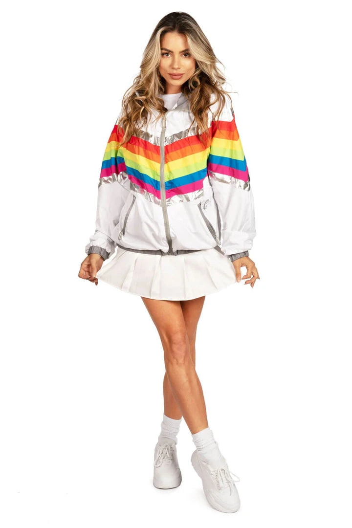After the worst of storms comes a perfect rainbow – and a huge sigh of relief. Embody the sunshine you feel after the storm in the (Women’s) Rainbow Pro Windbreaker Jacket! In a comfortable zip up featuring zig zagged colors of the rainbow complete with a silver lining on each end, it’s the symbolic style we all needed.