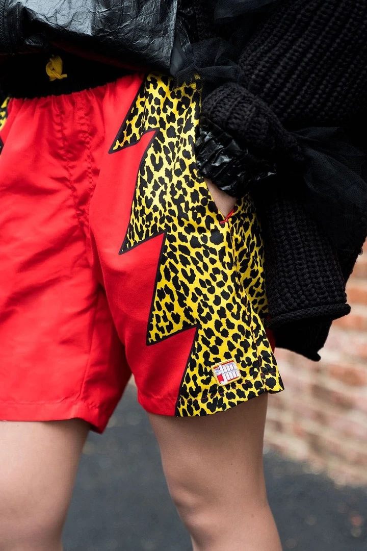 What’s the best way to stand out on the beach among thousands of other tanned, toned dudes? You could go taunting sharks, but we’ve got a much safer way. Pull on these Leopard Print Slim Jim swim trunks and watch your admirers swarm around you. These sexy red and yellow shorts have lightning bolts of leopard print cascading down your thighs. They just scream “I’m a guy who likes to eat meat.” Be that guy.