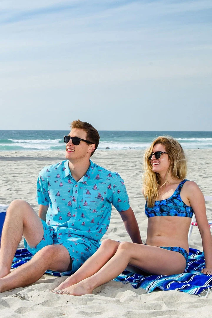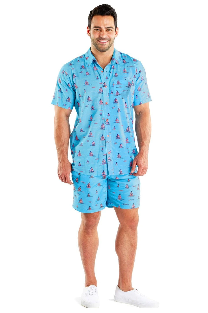 When the mercury hits a certain point, we all find ourselves staring out of the window and dreaming about that horizon. This summer, make that dream a reality with our Men’s Sunset Sail Hawaiian Shirt. Featuring hundreds of pink sailing boats just waiting to whisk you away, there’s no guarantee you won’t have booked a vacation within an hour of putting it on. The sea is yours, Captain!