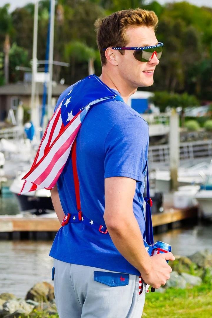 Sometimes, you need to take the whole American tourist gambit to a new level. And that’s just what you can accomplish with this patriotic fanny pack. It doesn’t only have our signature drink holder attached. There’s a cape. For real. You get to be the superhero you’ve always dreamed about! (Ability to leap tall buildings in a single bound not included).