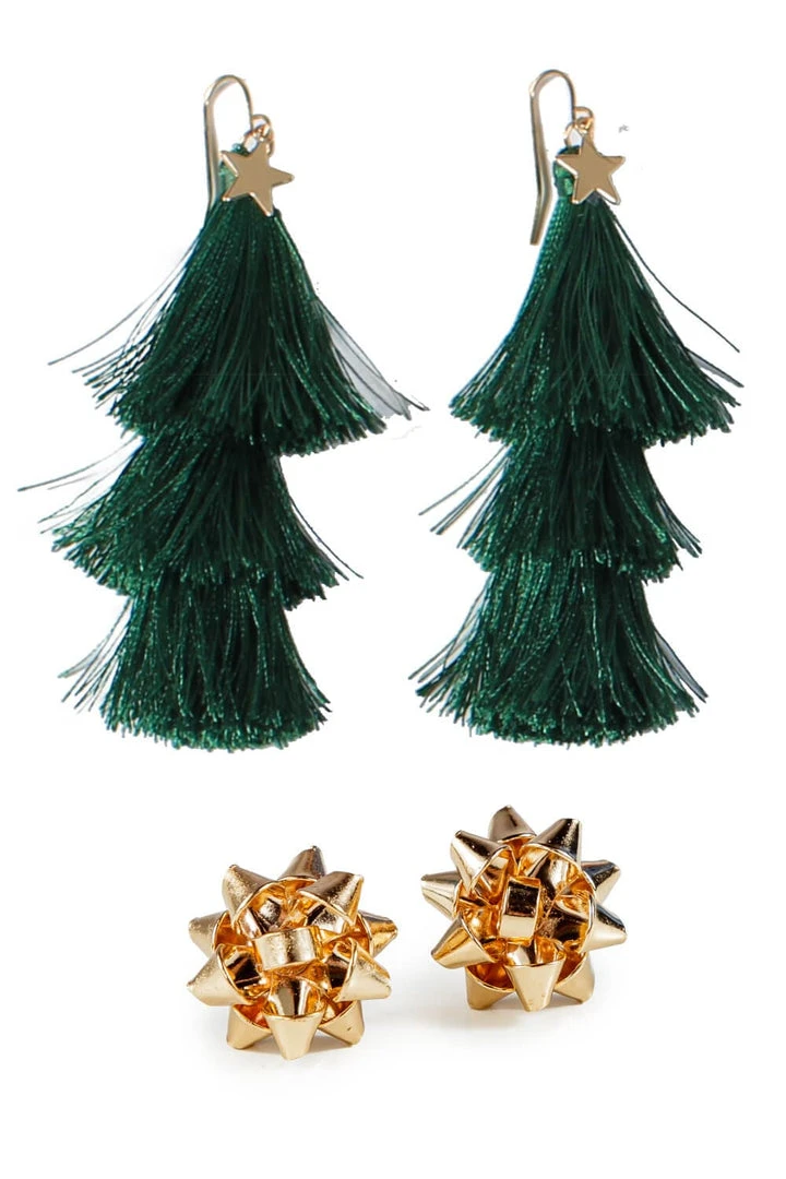 Be the first to review “Tipsy Elves Women Christmas Tree Tassel Earrings + Gold Bow Post Earrings Combo” Cancel reply