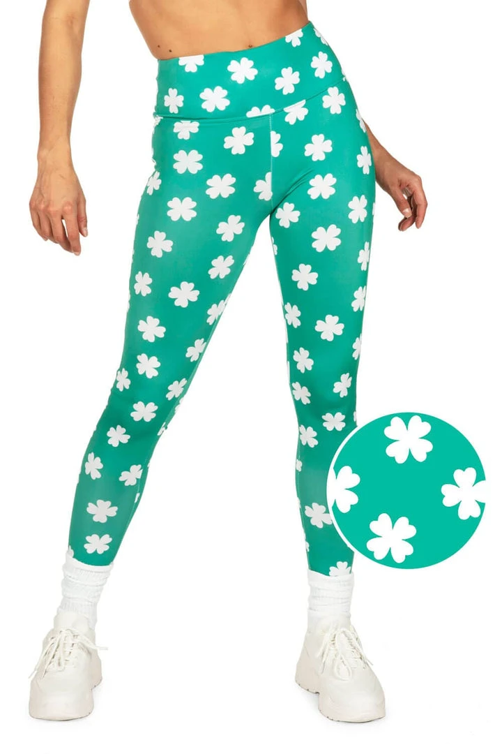 Slip into comfort and shift into maximum overdrive. Maximum overdrive in the luck department, that is. Our Maximum Luck Clover High Waisted Leggings feature white shamrocks over the classic St. Patrick’s day green – sure draw the attention of any that should be so lucky to have yours!
