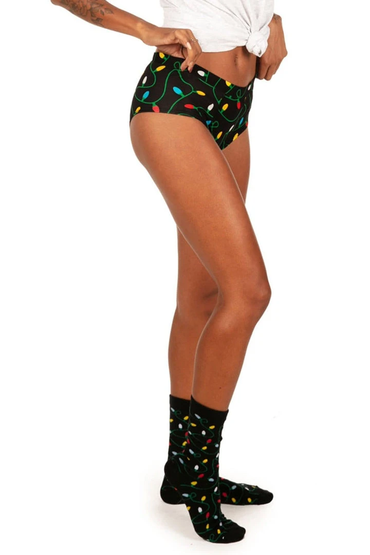 Show your lady friend she’s the light of your life with our Women’s Christmas Lights Underwear and Socks gift set. These super soft panties come with a fetching Christmas light design, complemented by a pair of matching tootsie warmers. Save the trees with this funky presentation box, too. Who needs Christmas trees when you have this?