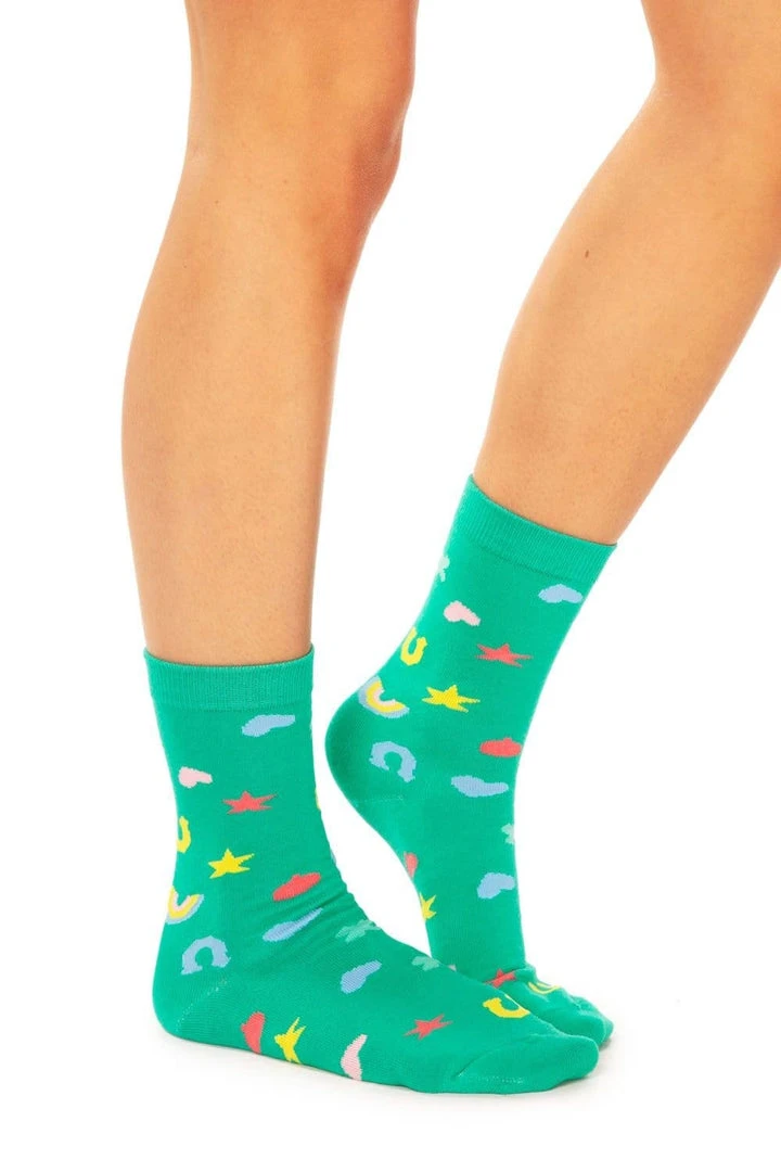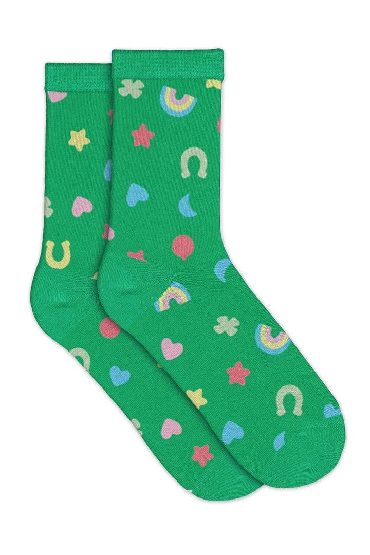 Ladies, need a little dash of your own Lady Luck this St Patrick’s Day? All you need is a subtle accessory – these Women’s Lucky Charmer socks are just the ticket. They’re covered ankle to toe in all things classic Irish. Rainbows, shamrocks, stars and moons will all make your feet feel like a million dollars. Of course, you can pair them with our matching shirts if you’re really looking to strike it lucky.