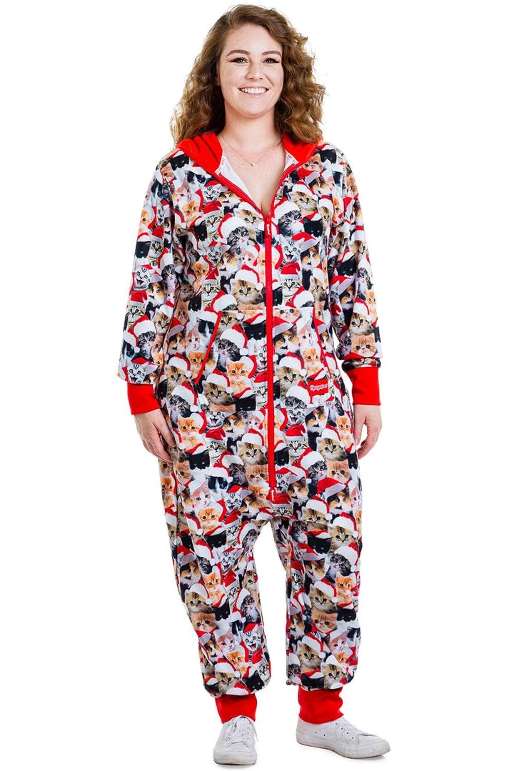 It’s a very Meowy Christmas and a happy New Year to you with this epic Feline Navidad outfit. Our Christmas cat jumpsuit won’t give you the power to fall three stories and land on your feet. But it will give you a strange craving for catnip and a fascination with small, furry objects. Also, you’ll get in trouble for obsessively batting at the tinsel on the tree. But it’s all worth it to be dressed up in this fabulously festive cat onesie.
