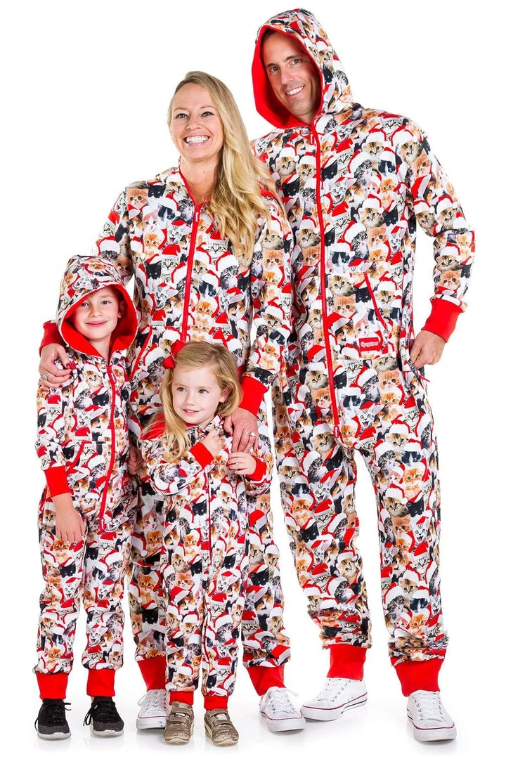 Check out all those adorable furry faces, just waiting to see what Santa is going to bring them this year. The truth is, St. Nick doesn’t like cats. He’s more of a reindeer person. But don’t let that stop you from adopting the thousands of felines on this jumpsuit. They need a good home, and they each come with their own cute Santa hat. How can you resist their purring?