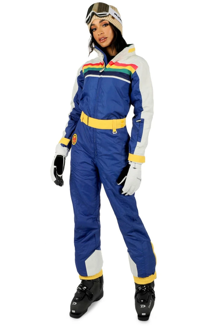 Our Mile-High ski suit is one for the record books! Don’t let the simple striped design fool you. This is the kind of outfit that was made for snowy selfies. The cinched in yellow belt and the built-in snow hood will make you look prepared for anything-even attacking the toughest slopes.