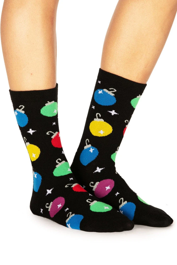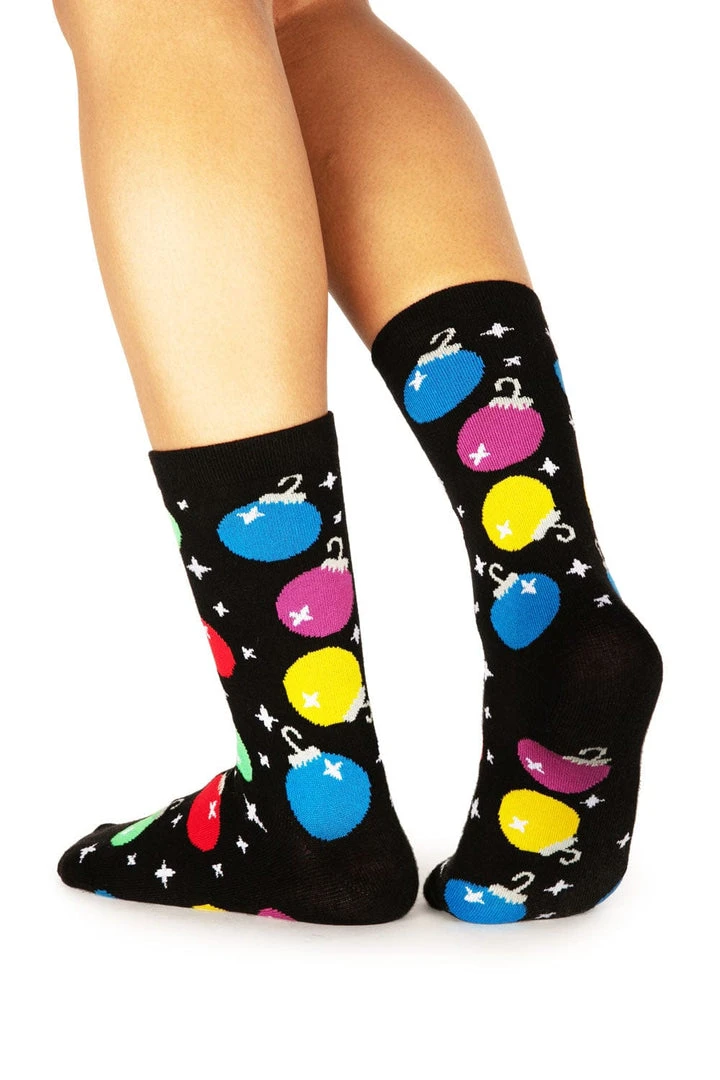 Feel like adding a little extra color to your Christmas wardrobe beyond the obvious? Light up like a Christmas tree with our Women’s Ornament socks. These super soft cotton socks feature dozens of sparkling baubles, ideal for snuggling up at home or showing off in the office. Please, these socks are ironic – don’t go walking on any actual ornaments.