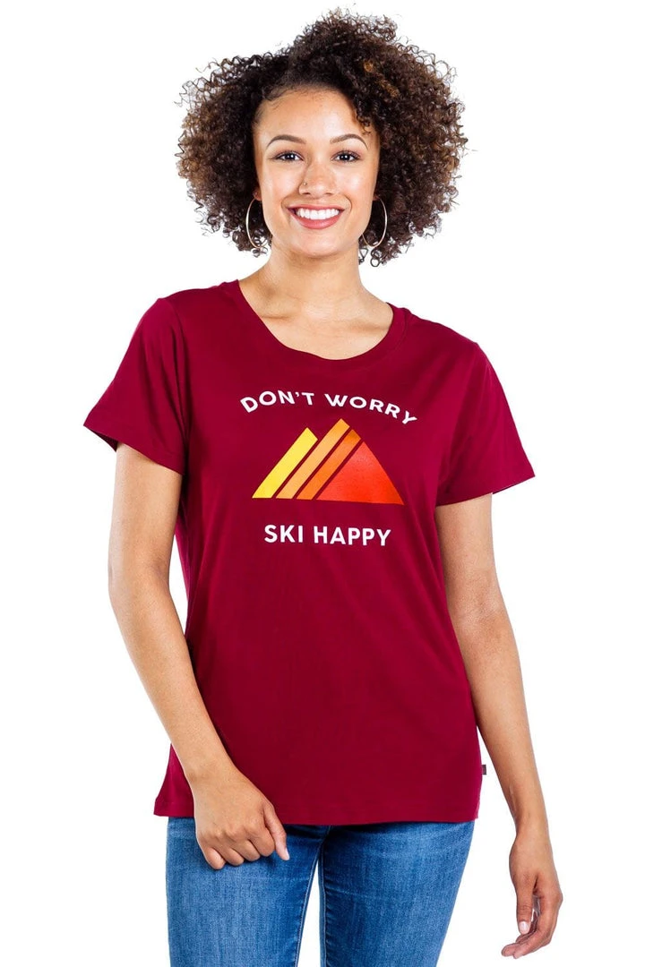 So you’ve got a fear of heights and you can’t remember how many shots you had last night. So what? Take a leaf out of our Women’s Don’t Worry Ski Happy tee. Just chillax and get yourself on that ski lift. When you’re a gazillion feet up in the air, there’s no time for worries – just sun, slopes and skis. Show this to nervous gal pals or wear underneath ski suits for chill reggae vibes.