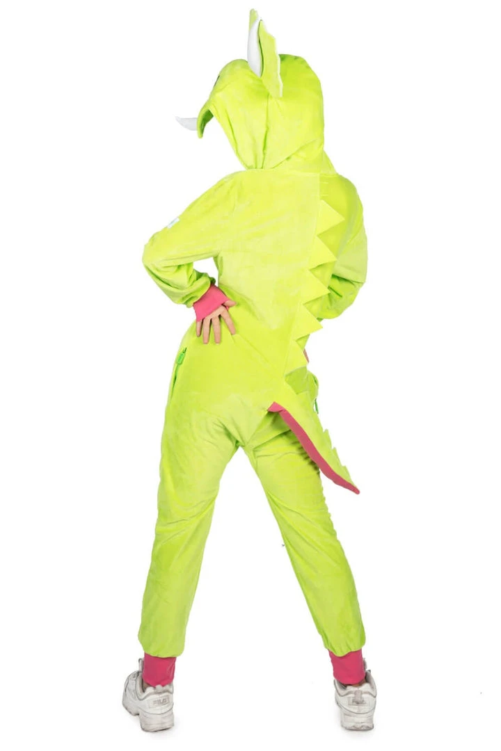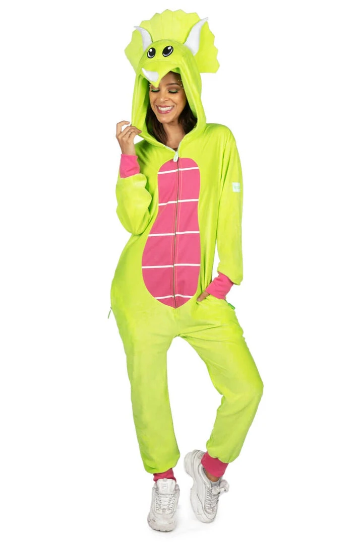 It might be spelled triceratops, but we call it a try-ceratops. As in, “try and stop me from looking so good.” Or “try everything once.” The Women’s Triceratops Costume is a beautiful green and pink jumpsuit with BDE – big dinosaur energy. Made from quality materials, it’s an easy-on, easy-off costume that is so fabulous, you could hang this next to your favorite dress and not blink an eye. Wear it with heels. Wear it with wedges. Wear it on the couch while you watch TV. The great thing about being a try-ceratops is that you can try it all and look good while doing it. Charge into the Haloween party this year wearing the Women’s Triceratops Costume and put all those sexy t-rex exes to shame. You’ll be everyone’s favorite prehistoric bae.
