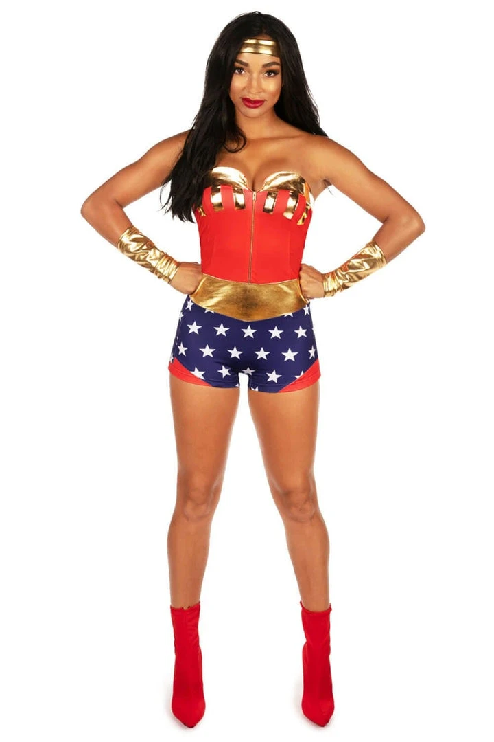 This is your Halloween costume, wink wink. It’s totally not your ACTUAL superhero suit, wink wink. Because you’re just an everyday, normal human being that doesn’t have a secret identity or powers or anything, right? Right. The Wonder Girl Costume is a perfect cover for your superhero lifestyle. Because what better way to hide being a crime-stopping, justice-upholding queen than by dressing like one? No one will suspect it. The Wonder Girl Costume includes the stars and stripes bodysuit, armbands and a tiara for being the totally ordinary person you are. And actually, should you ever decide to become a vigilante, I guess your Halloween costume does double duty. Bonus. Pick this up for Halloween or any time you need to jump into a phone booth and change before fighting crime. Are there even still phone booths?